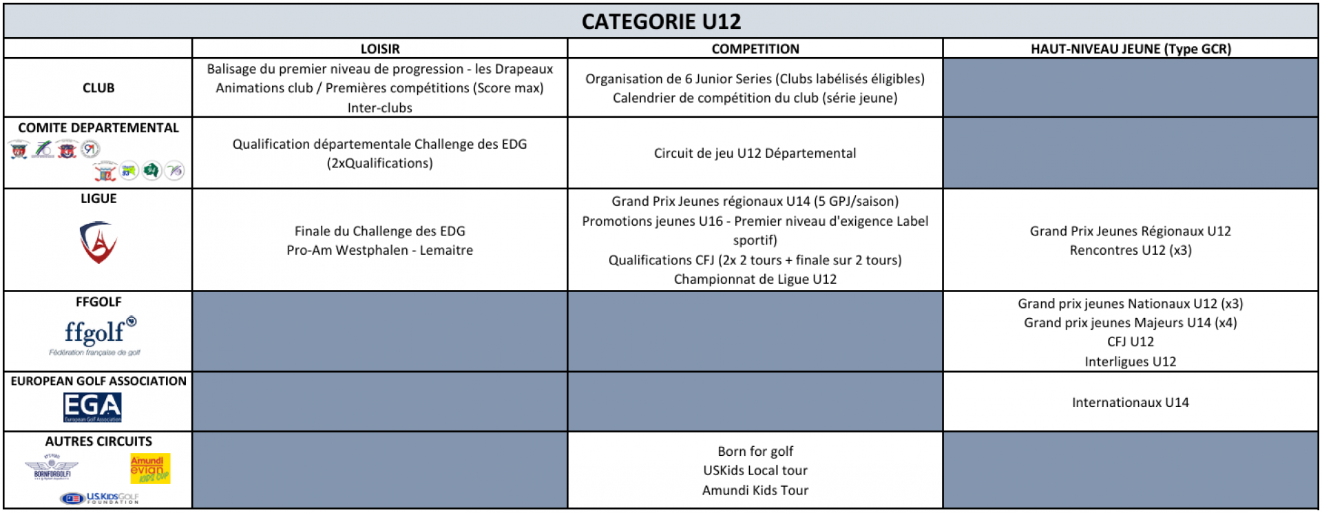 Vous trouverez ci-dessous l'offre de jeu proposée à ces catégories par la Ligue de Golf Paris Ile-de-France et ses comités départementaux.