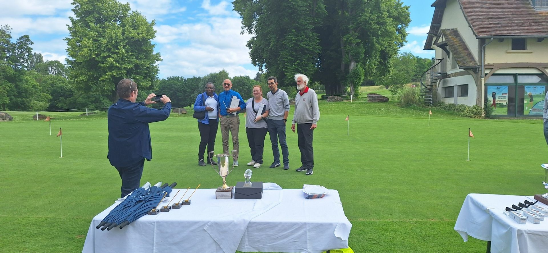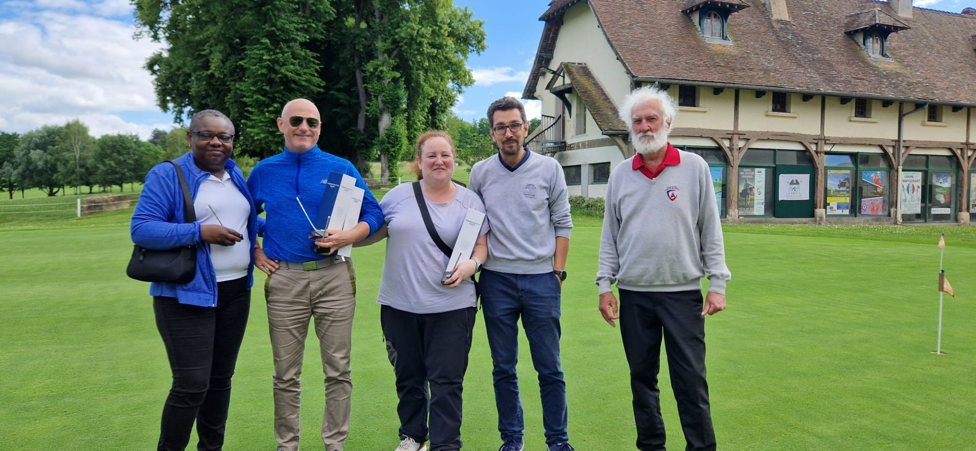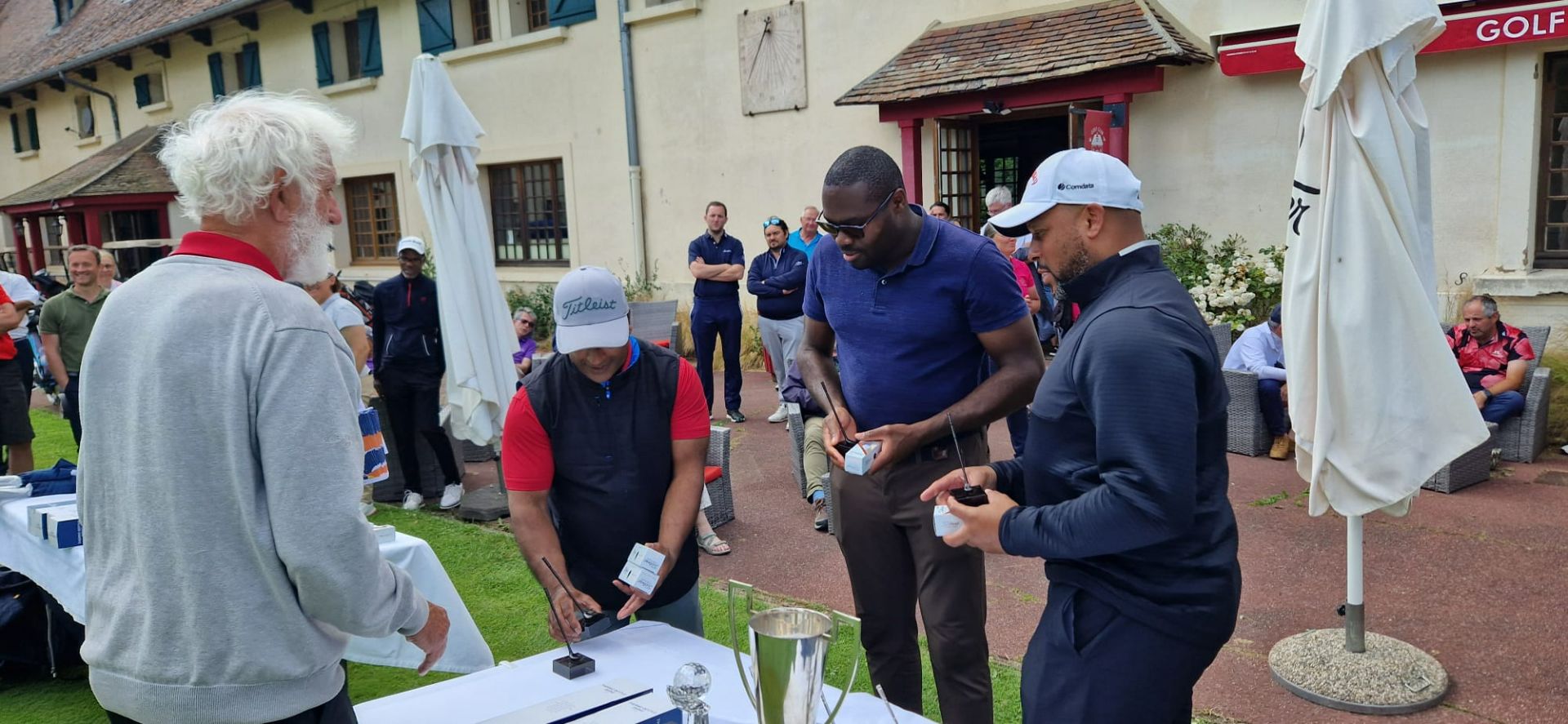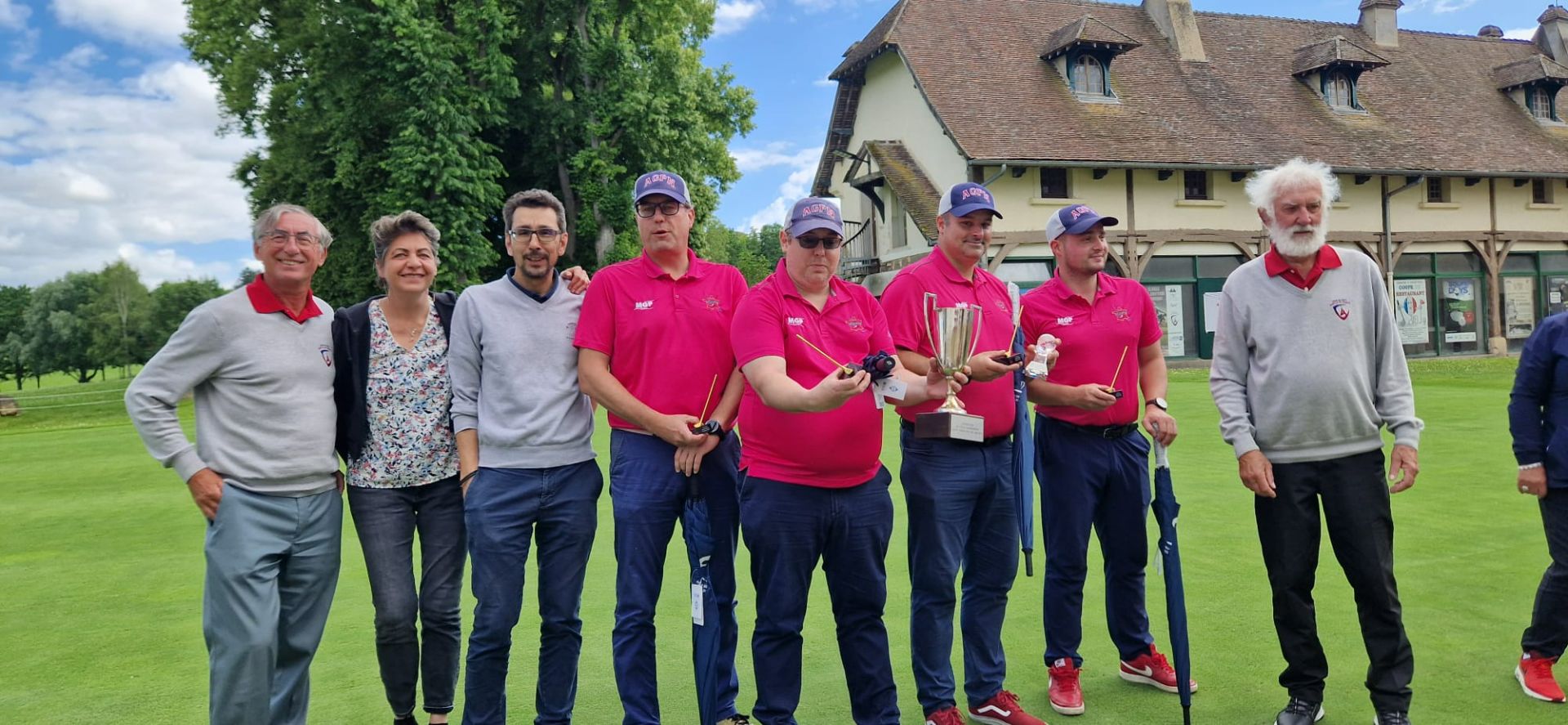 Merci à nos arbitres, Michel et Guillaume, merci aux six bénévoles de la commission du golf d'entreprise qui ont assuré la distribution des cartes, le starter au 1 et au 10, le recording et la saisie des cartes sur RMS9.