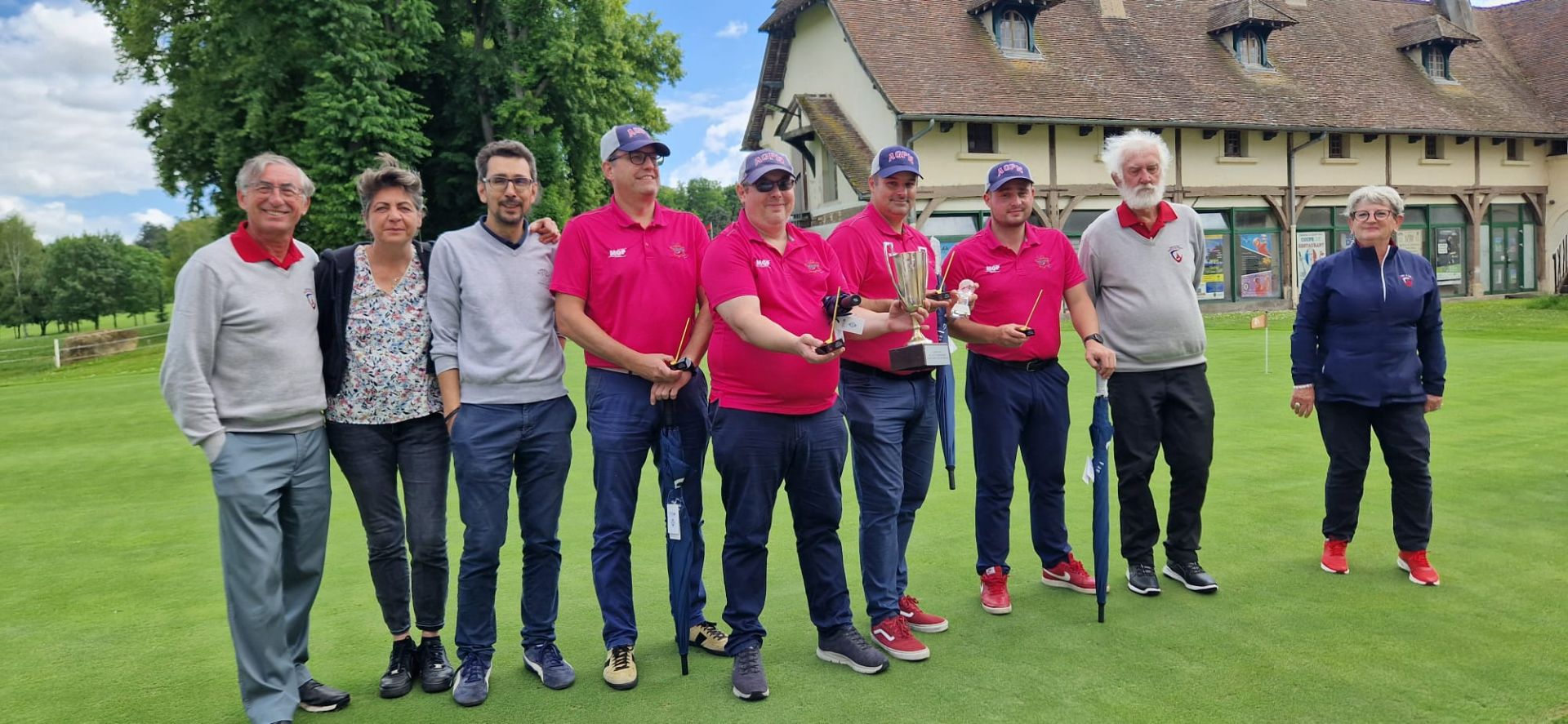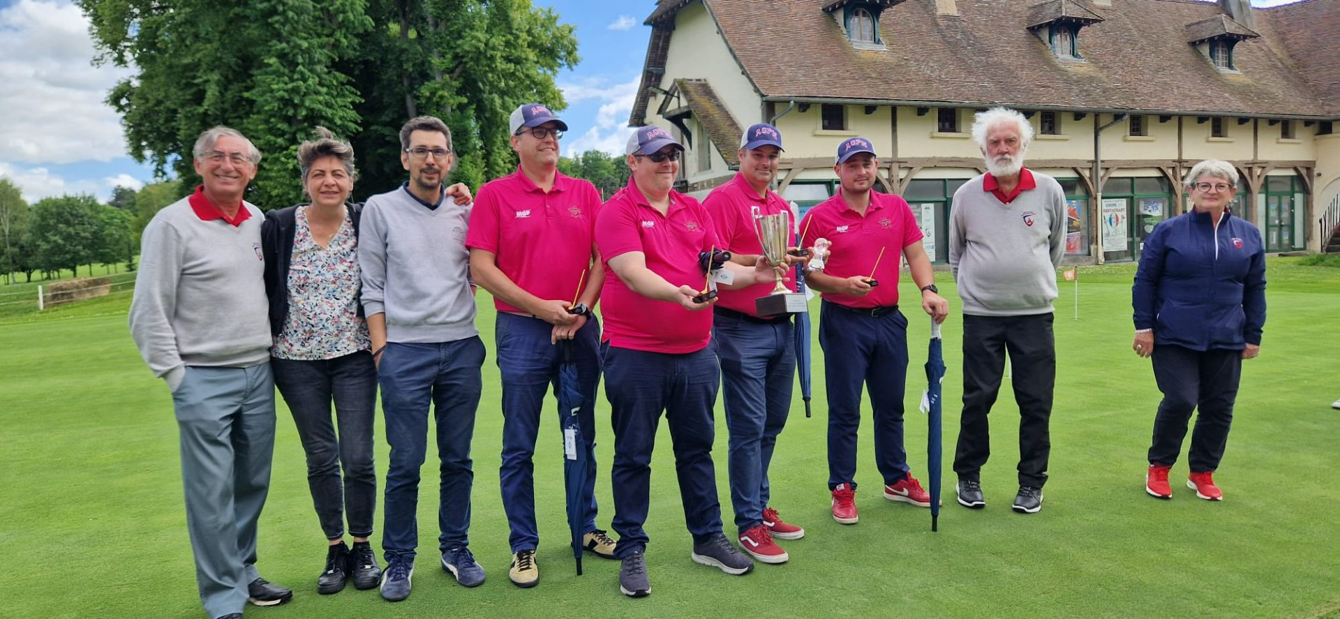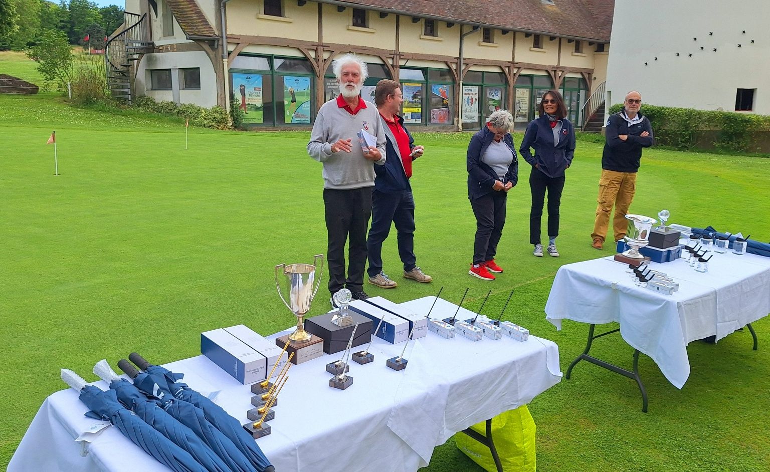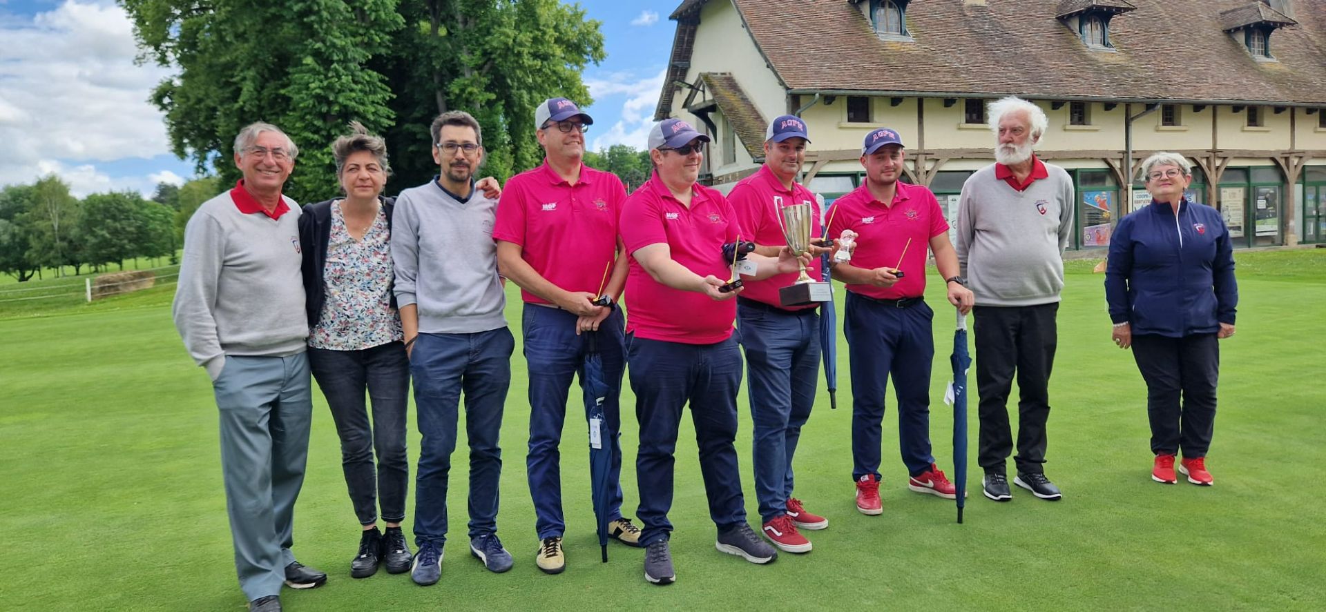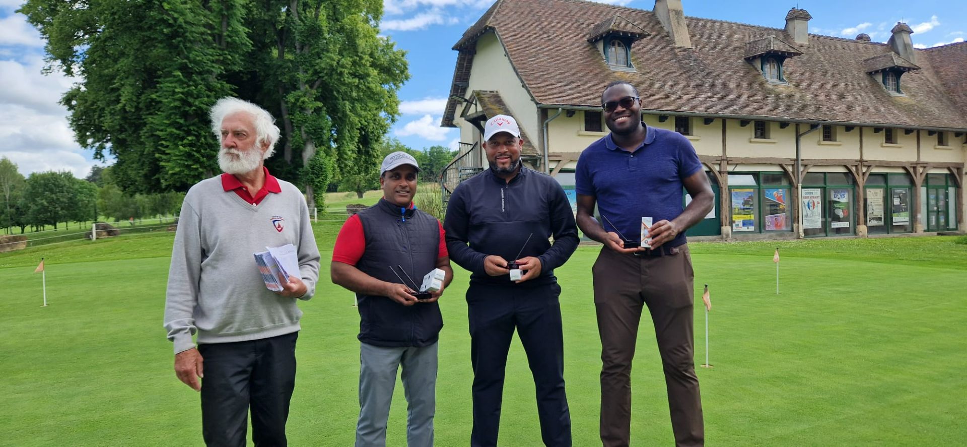 Merci à nos arbitres, Michel et Guillaume, merci aux six bénévoles de la commission du golf d'entreprise qui ont assuré la distribution des cartes, le starter au 1 et au 10, le recording et la saisie des cartes sur RMS9.