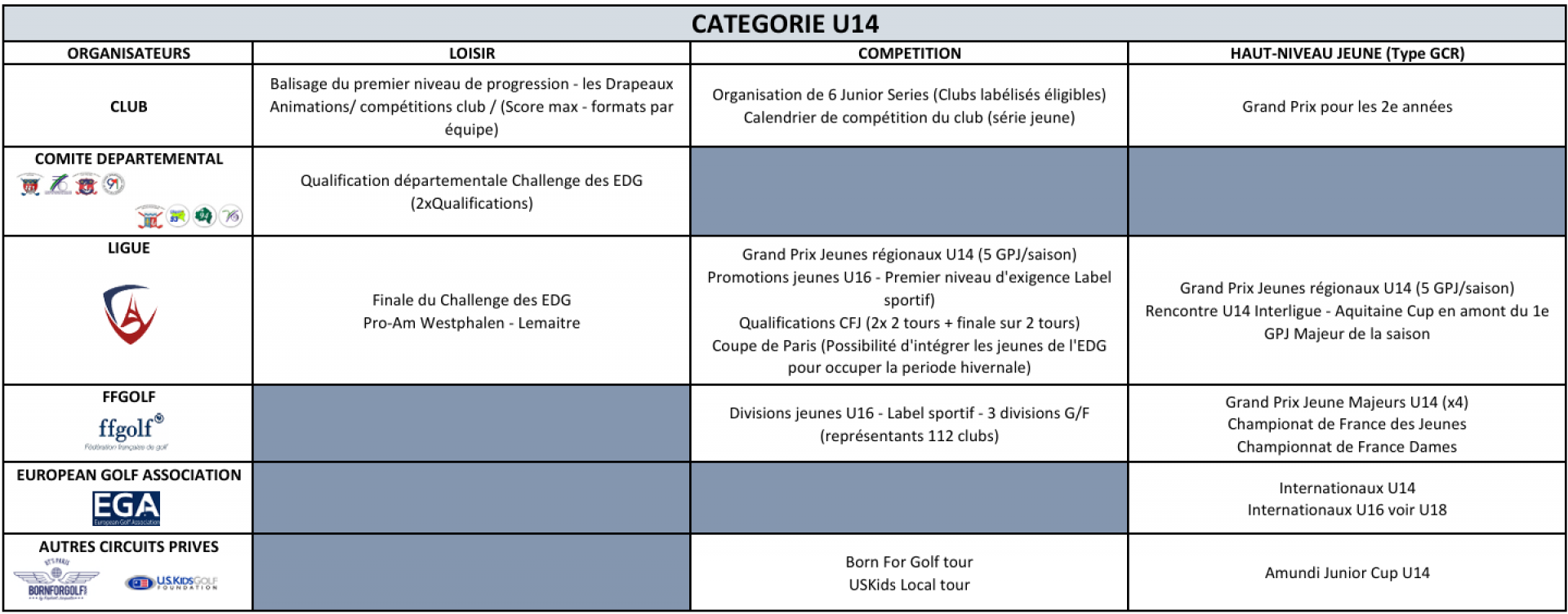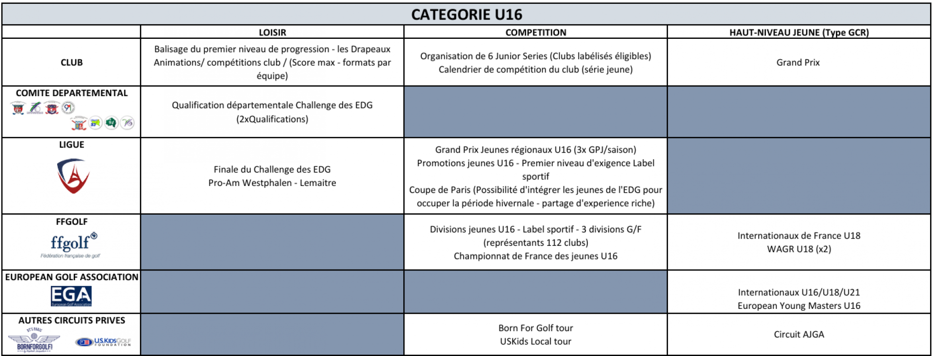 Vous trouverez ci-dessous l'offre de jeu proposée à ces catégories par la Ligue de Golf Paris Ile-de-France et ses comités départementaux.